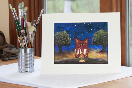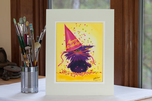 Happy Birthday? Cranky Cat in Party Hat — Matted Print