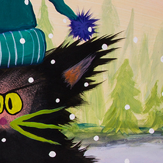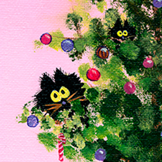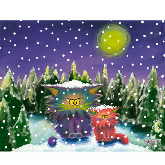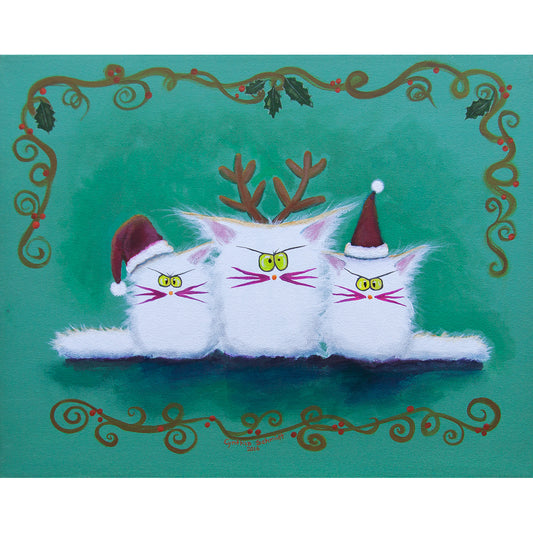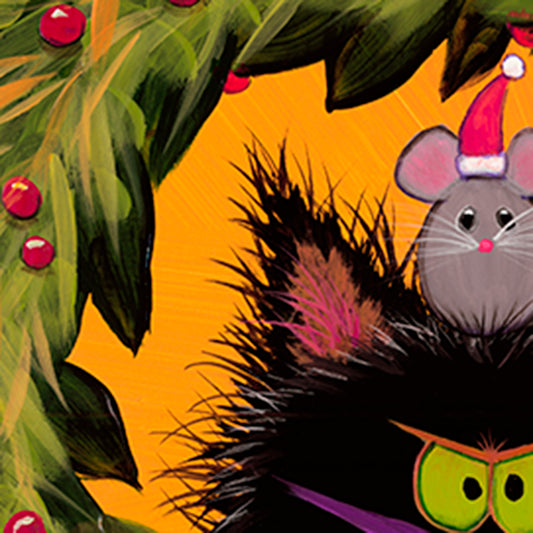 Cranky Christmas Cat in Wreath, now with mouse — Note Card