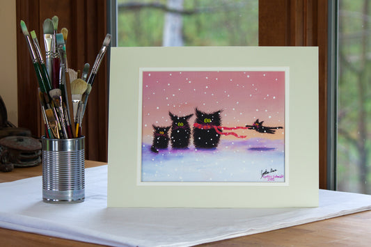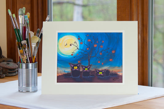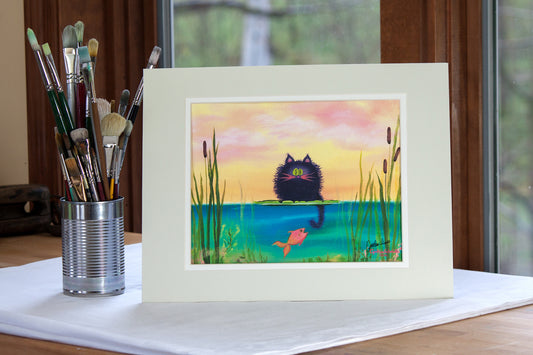Prints are made by me on high quality archival paper, and are mounted in a double mat that measures 11x14. This is a standard, common size which makes it easy to frame your print in the frame of your choice and behind glass.