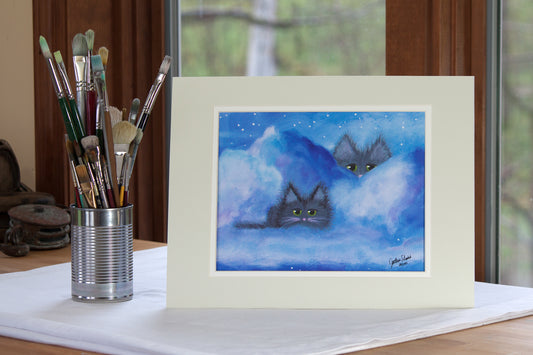 Prints are made by me on high quality archival paper, and are mounted in a double mat that measures 11x14. This is a standard, common size which makes it easy to frame your print in the frame of your choice and behind glass.