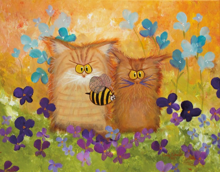 Everyone's cranky today! Two cranky cats and one angry bee.