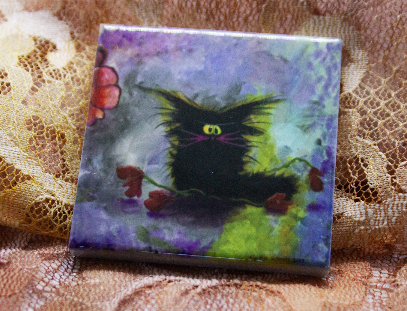 A Quality Control Cat is not pleased with the quality of these poppies.