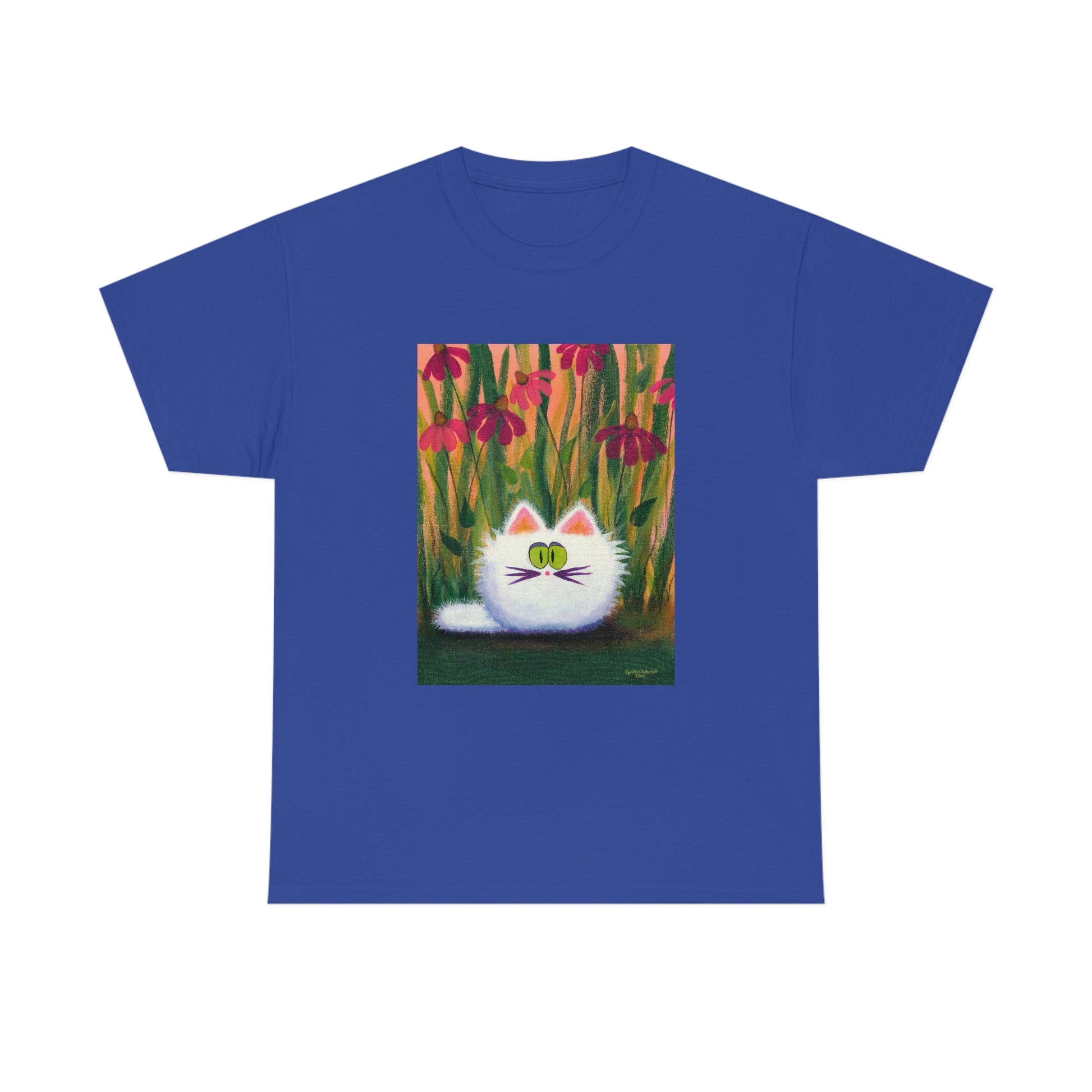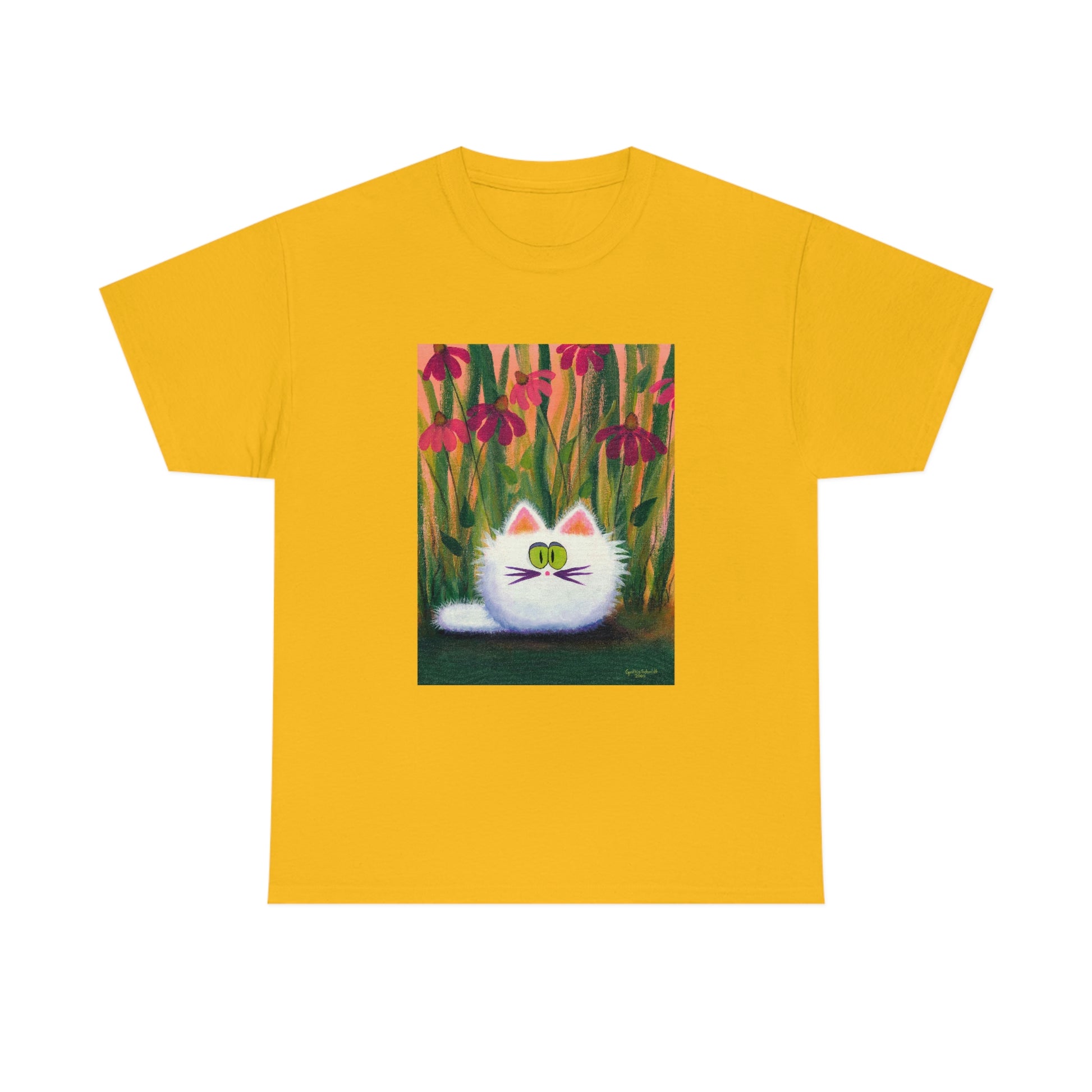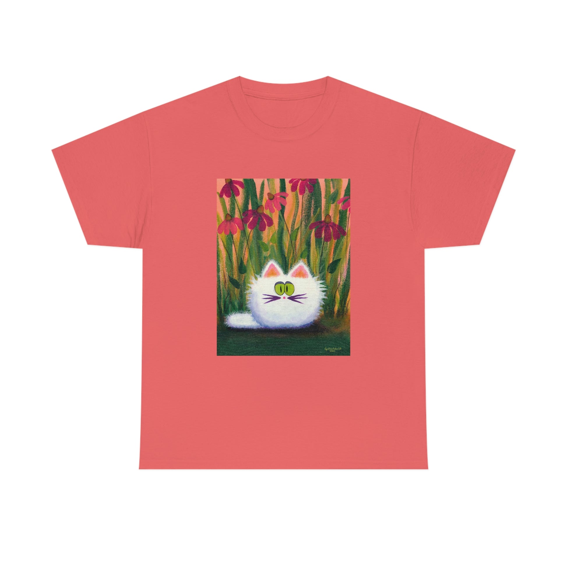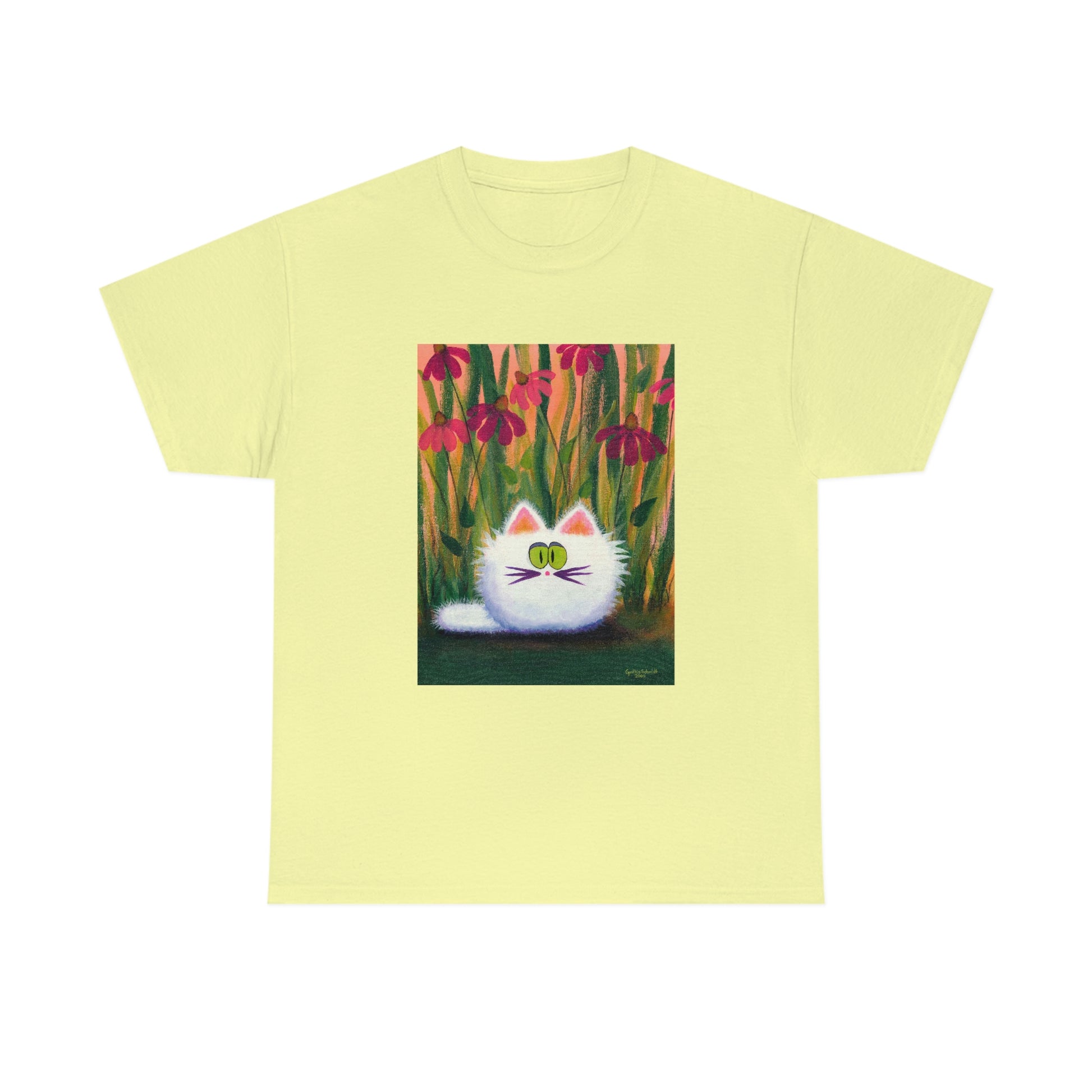 White FluffCat with Coneflowers - T-Shirt! Free Shipping!