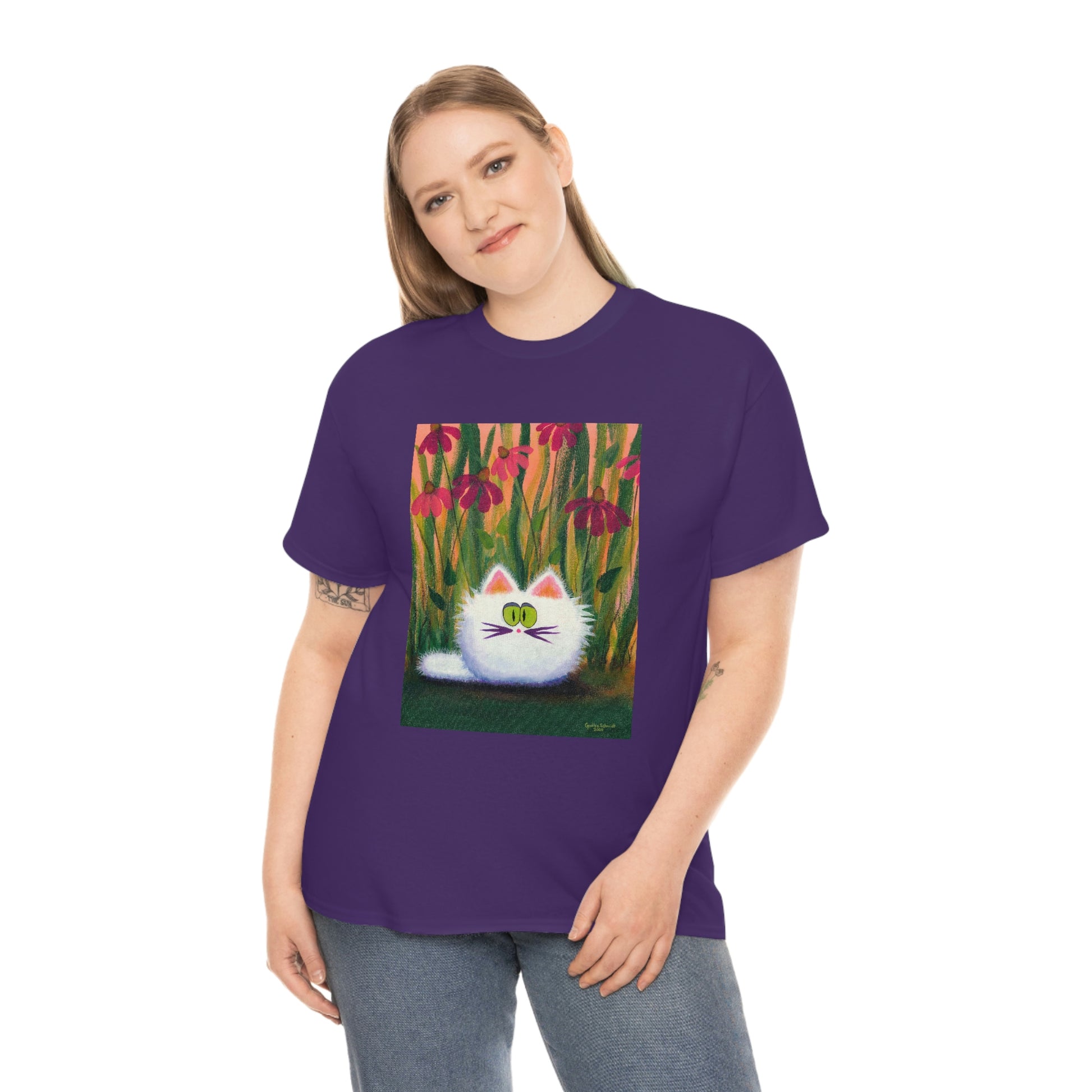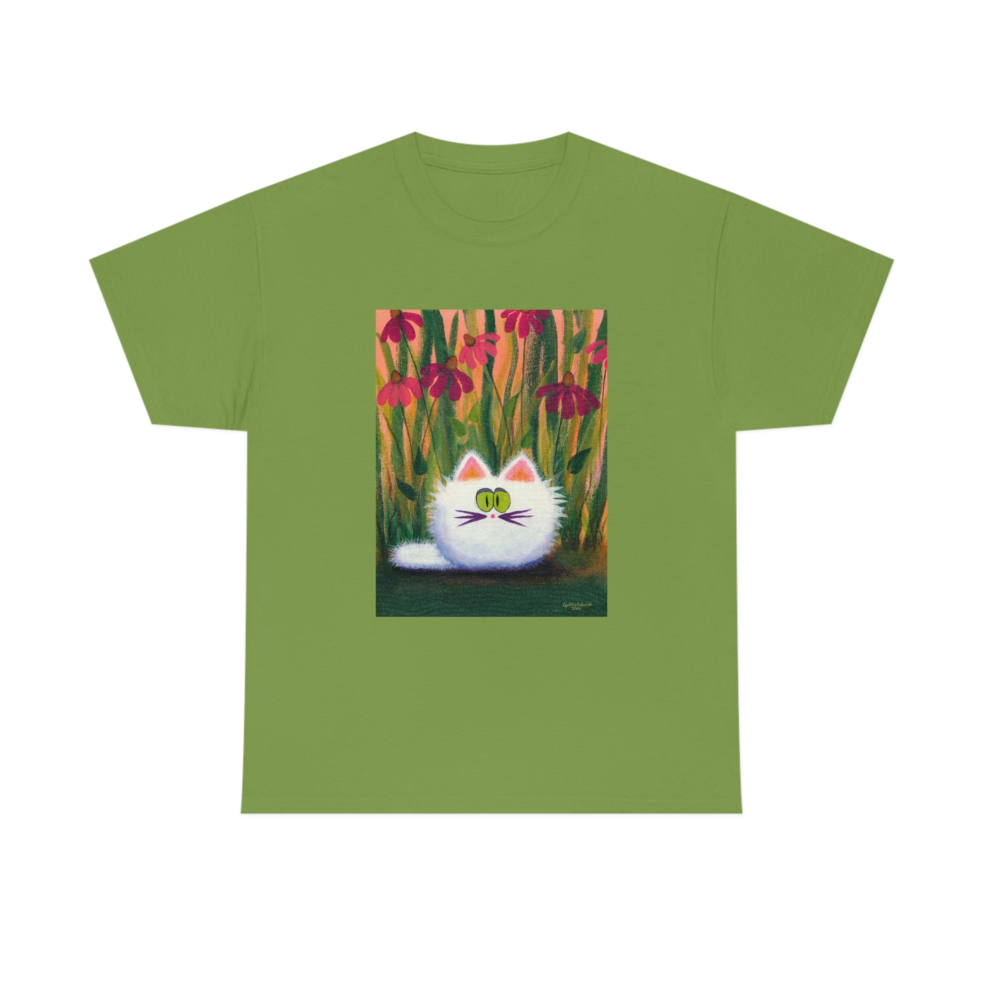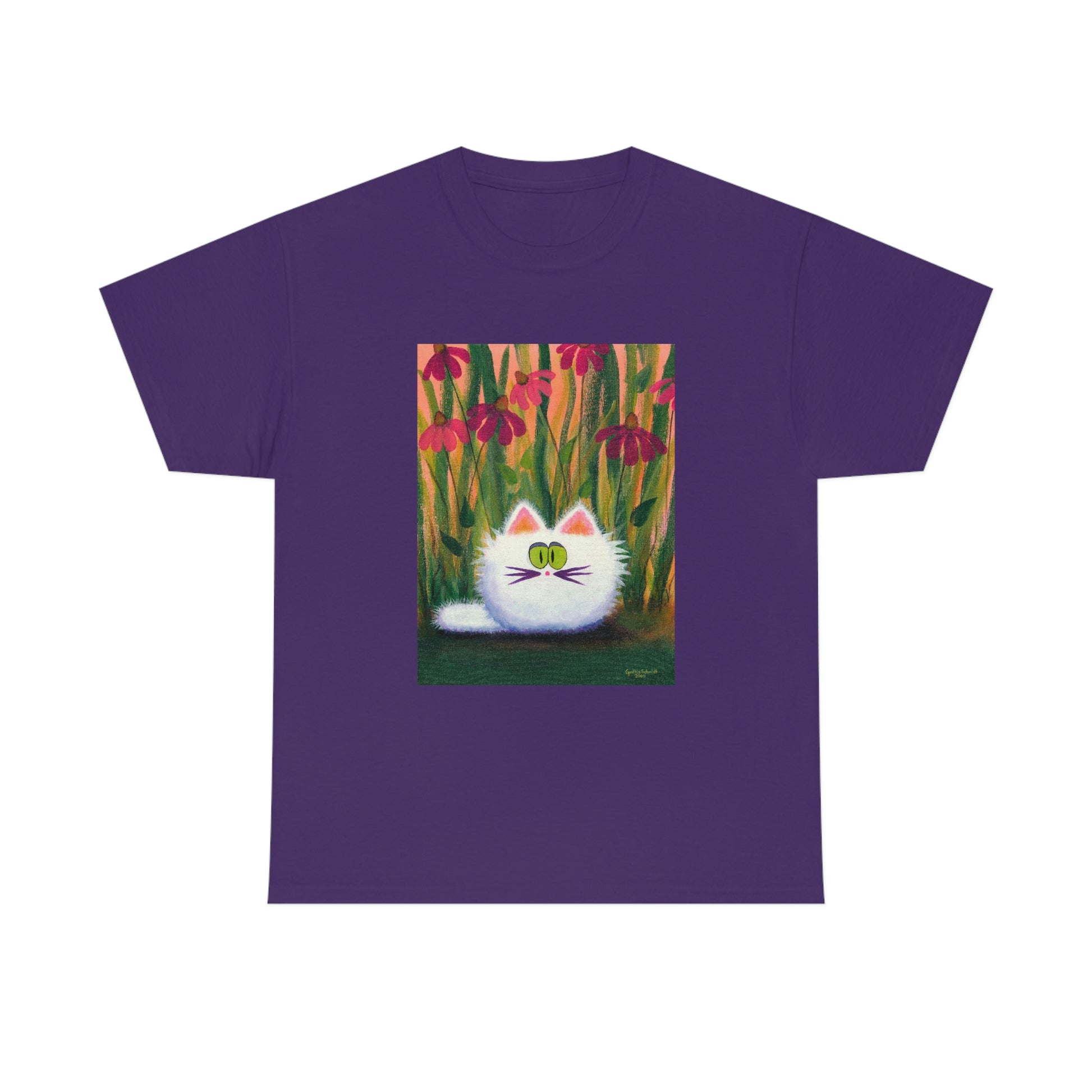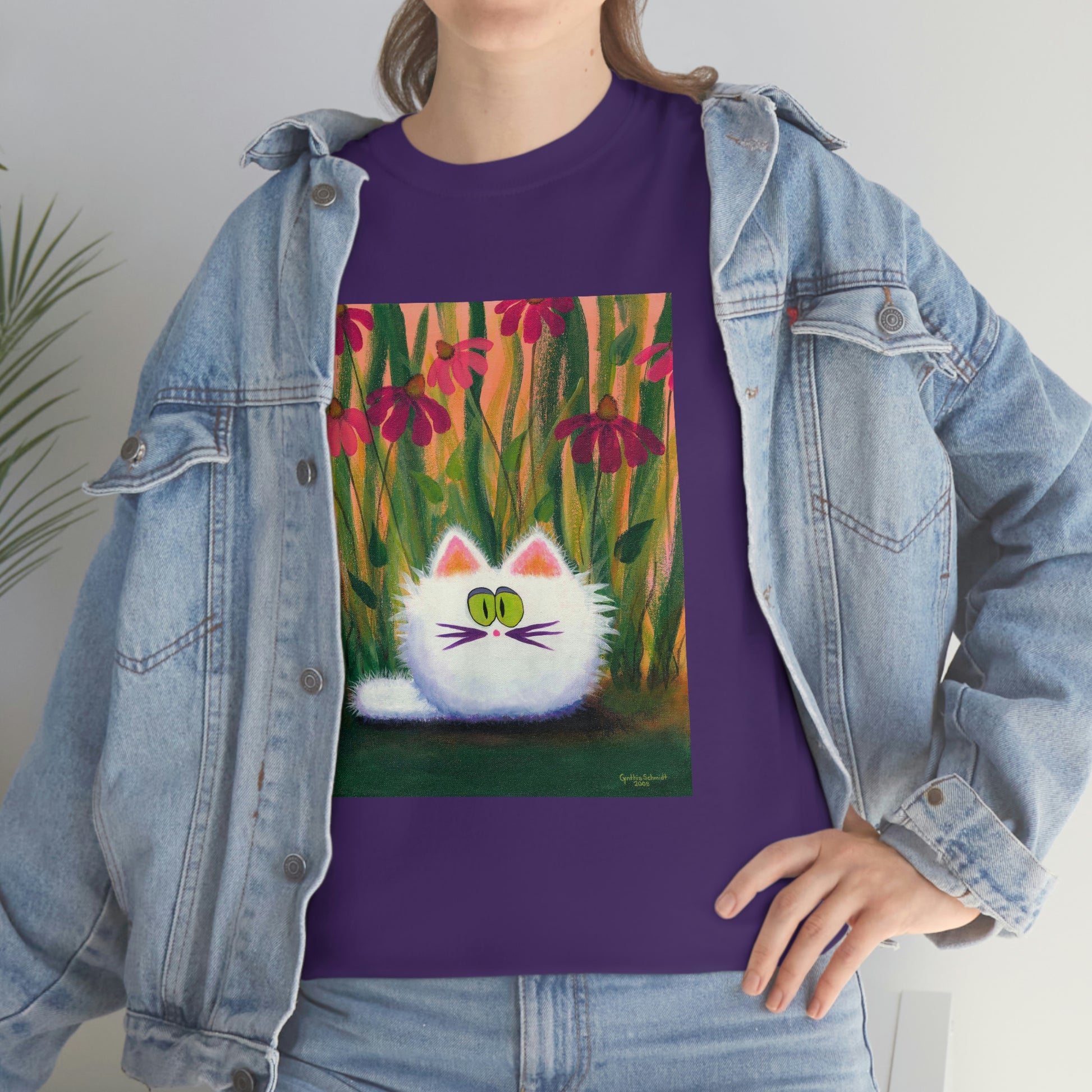 White FluffCat with Coneflowers - T-Shirt! Free Shipping!